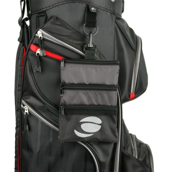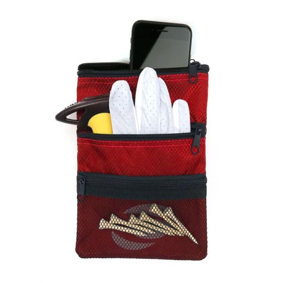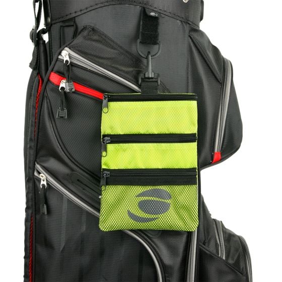 The Orlimar Golf Detachable Accessory Pouch is perfect for additional storage of personal items and golf accessories. Features three zippered pockets, a visible mesh pouch and bag clip.